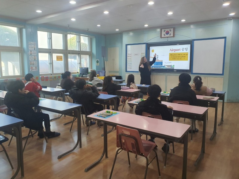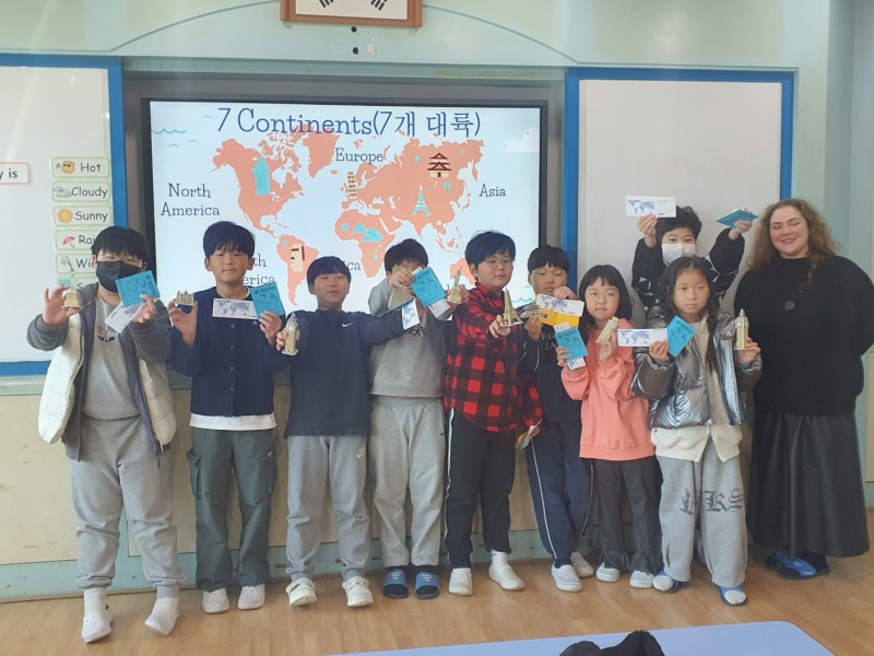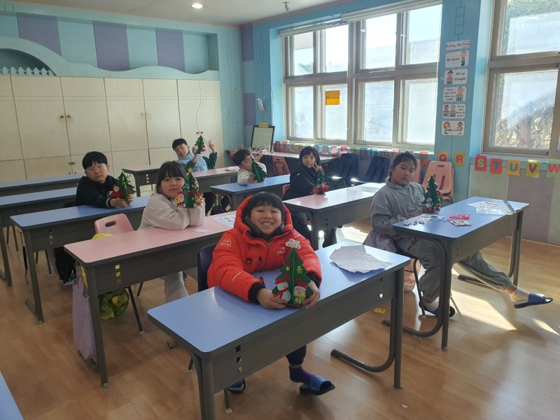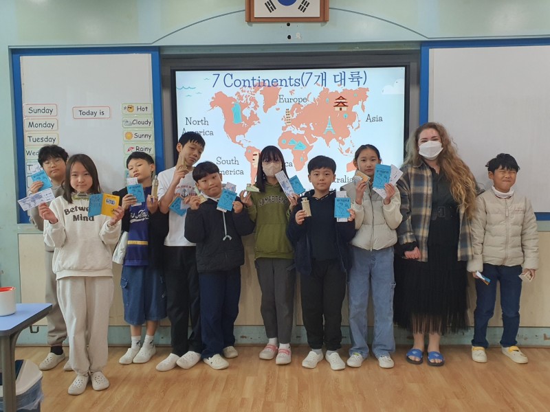 4. 수업내용: 공항과 관련된 주요 단어 및 표현 알아보기, 여권과 세계 랜드마크 만들기, 미국 크리스마스 문화 알아보기, 트리 만들기